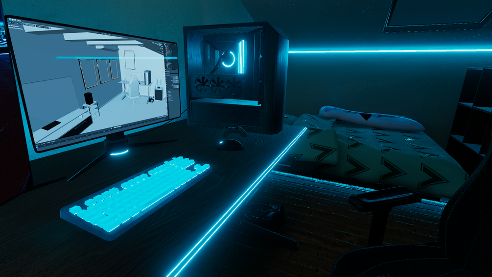 I am happy to present Attic gamer room asset! You can buy it in two options: