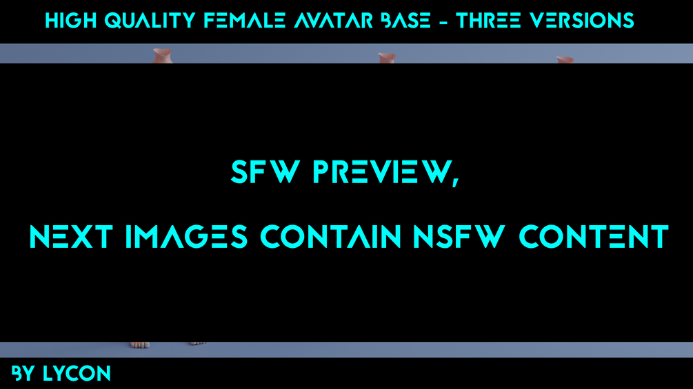 This base has to be credited in main description (NOT in external link/txt) of sold avatar which use this base, with link to this gumroad page like this " Avatar Base by Lycon - lycon.gumroad.com/l/emhux"