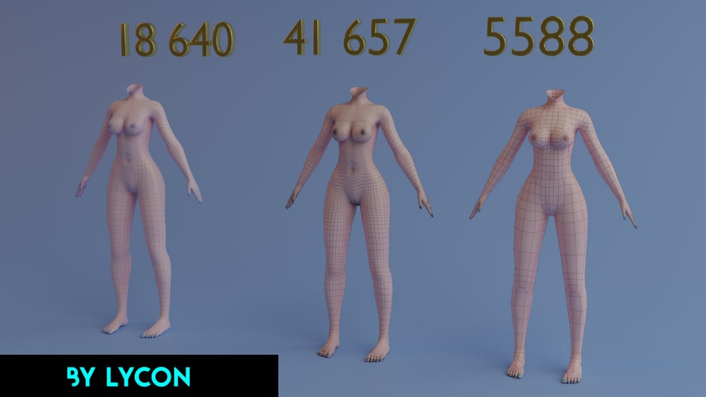 You are buying THREE bases with different triangle count (including nails): - High poly - 41 657 triangles