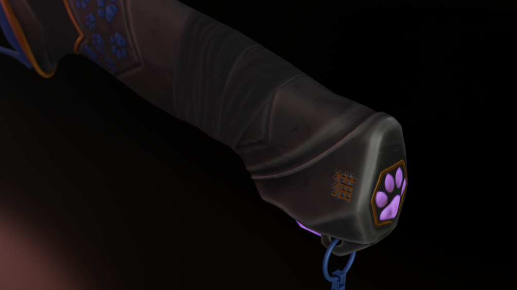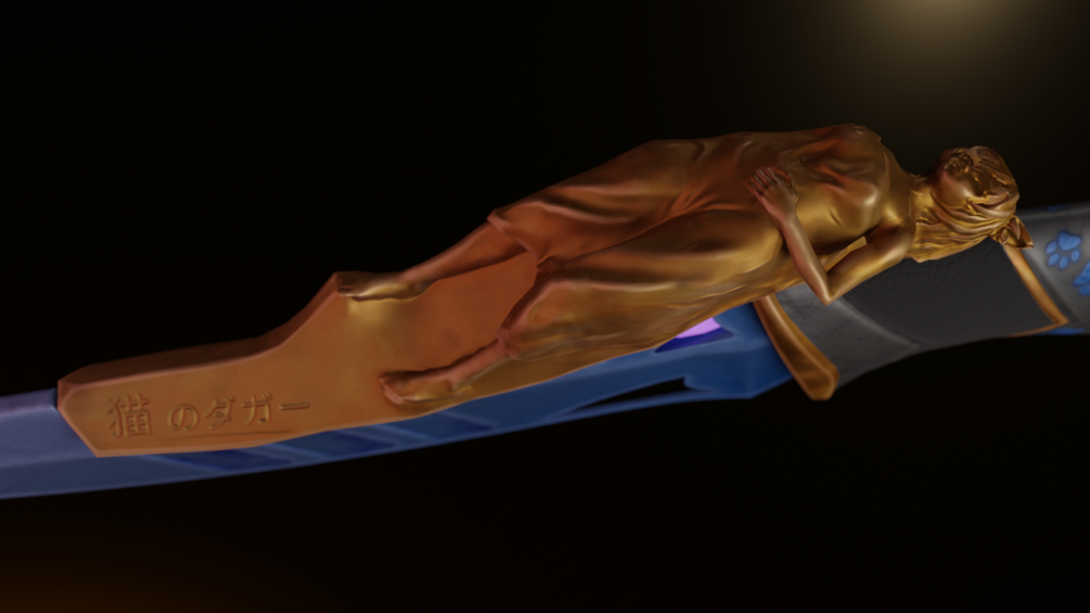 Dagger is a 3D object designed for use in VRChat avatars. It has been created using Zbrush, Blender, and Substance Painter. Blender was used for retopology and base meshes, Substance Painter for texturing, and Zbrush for high poly.