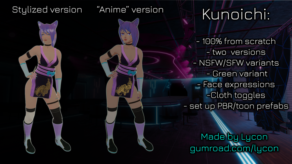 Now Kunoichi avatar includes Japanese mask for free! -Â https://lycon.gumroad.com/l/szzgR
